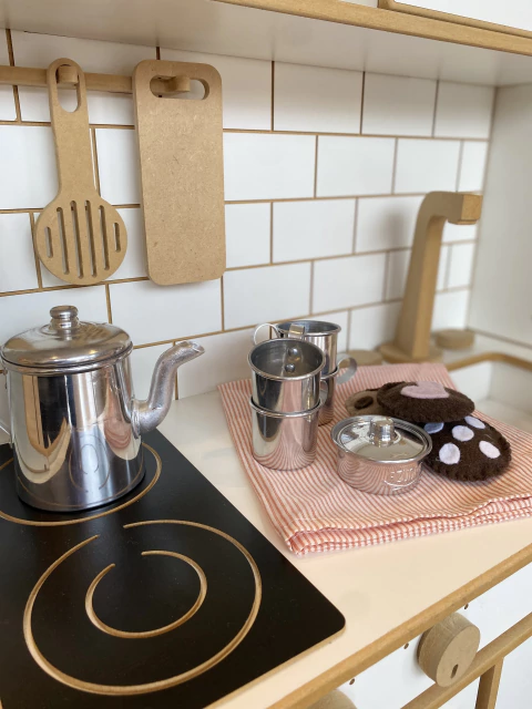 Fabricado con materiales resistentes y seguros, este juego estimula el juego simbólico, la creatividad y la motricidad fina mientras los pequeños imitan a los grandes en la cocina